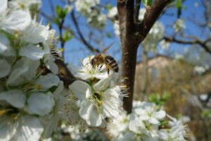 Momentan blühen alle Obstbäume, Tulpen, Blaukissen und Johannisbeeren. Die Temperaturen sind warm und die Sonne scheint. Ideales Flugwetter für die Bienen und riesiges Angebot an Pollen und Nektar. Zeit für eine Information wie es meinen Bienen geht.